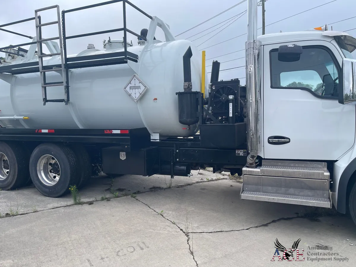 2025 DOT 412 Liquid Vacuum Truck for Sale, mounted on a Kenworth T480 chassis. This unit features a 70 BBL DOT-412 tank with a full-opening rear door and body hoist for efficient unloading. Powered by a Fruitland 870 vacuum pump, it delivers strong, dependable vacuum performance. The Kenworth chassis is equipped with a PACCAR PX-370 engine paired with an Allison automatic transmission, providing reliable power and smooth operation. Ideal for contractors and operators needing a compliant, high-performance liquid vacuum truck.